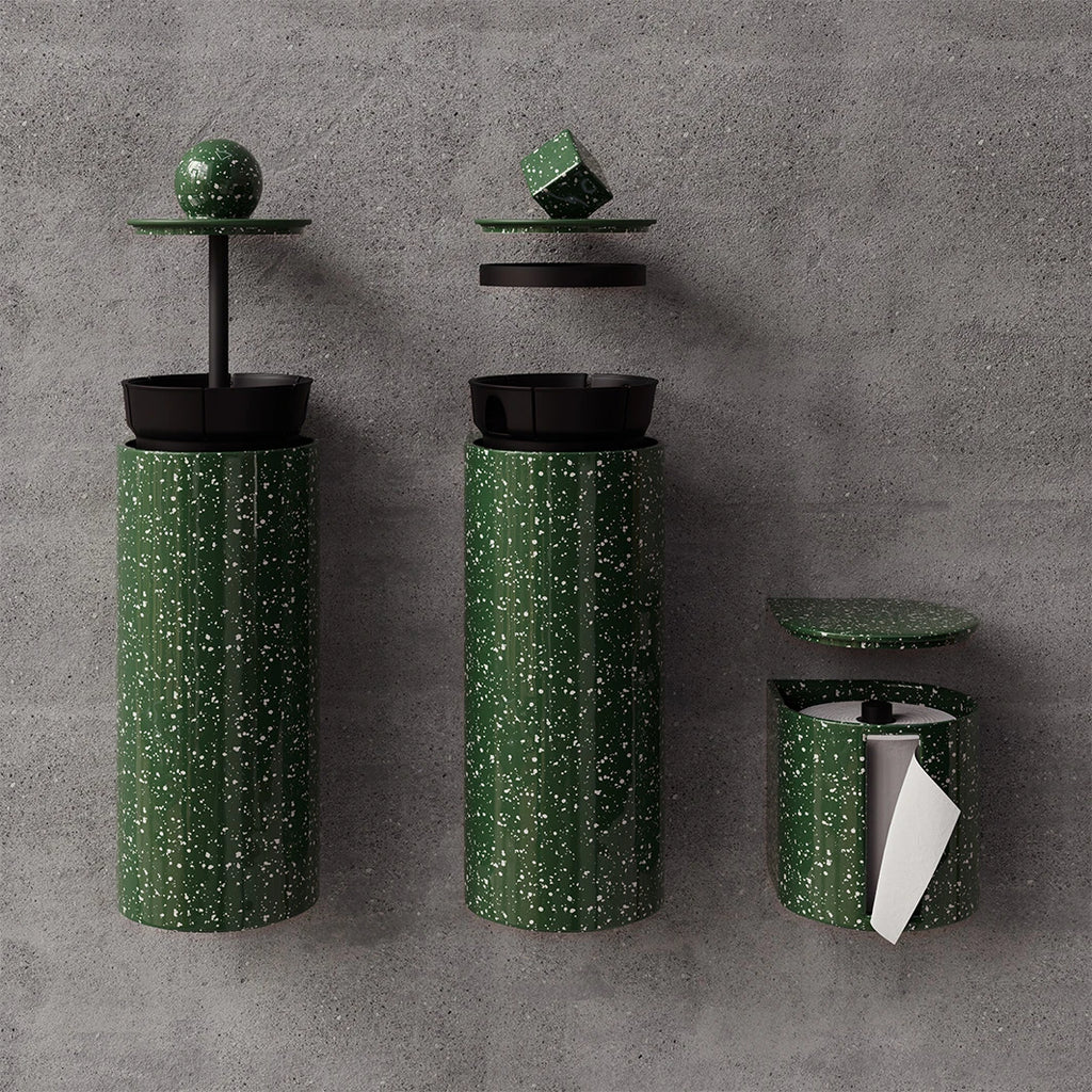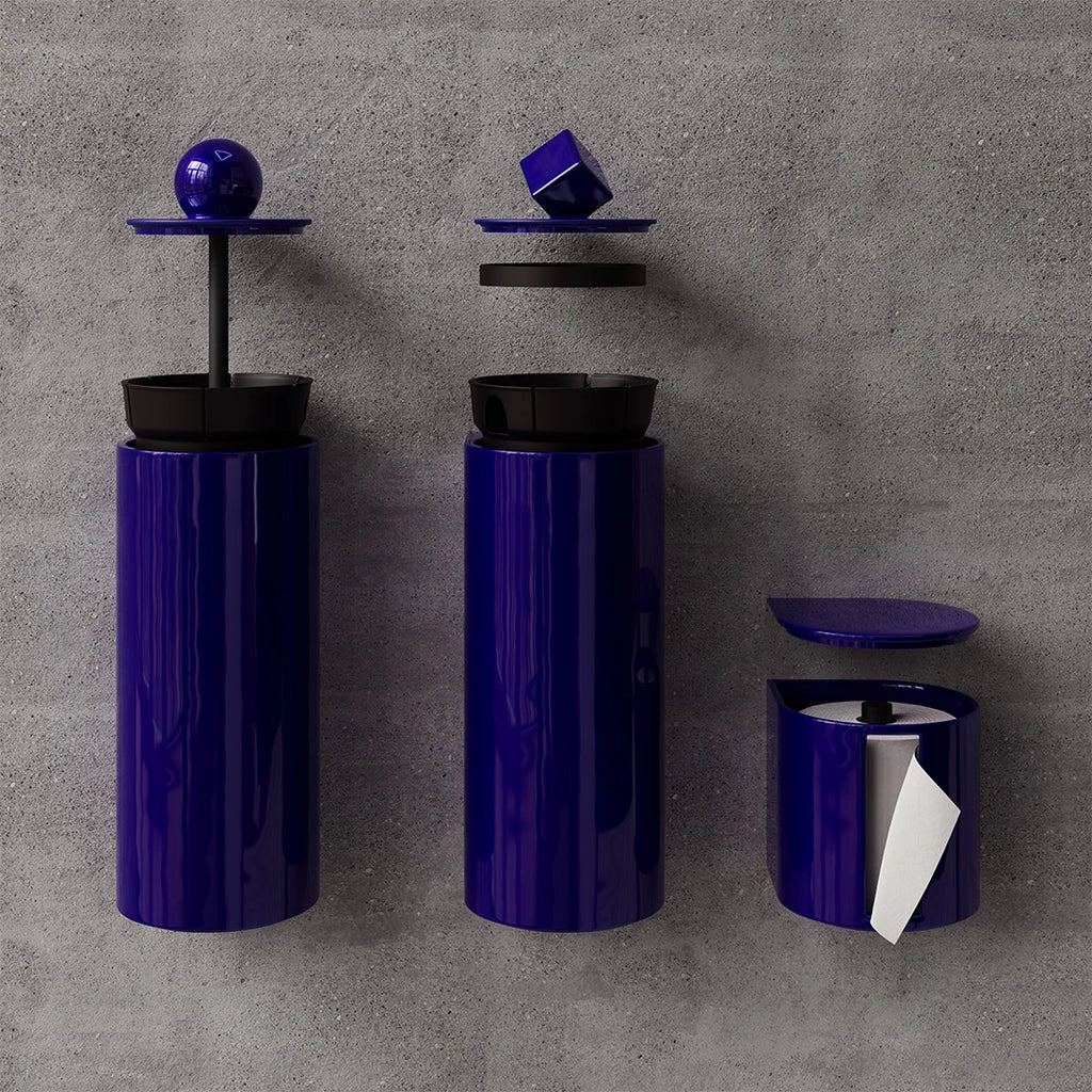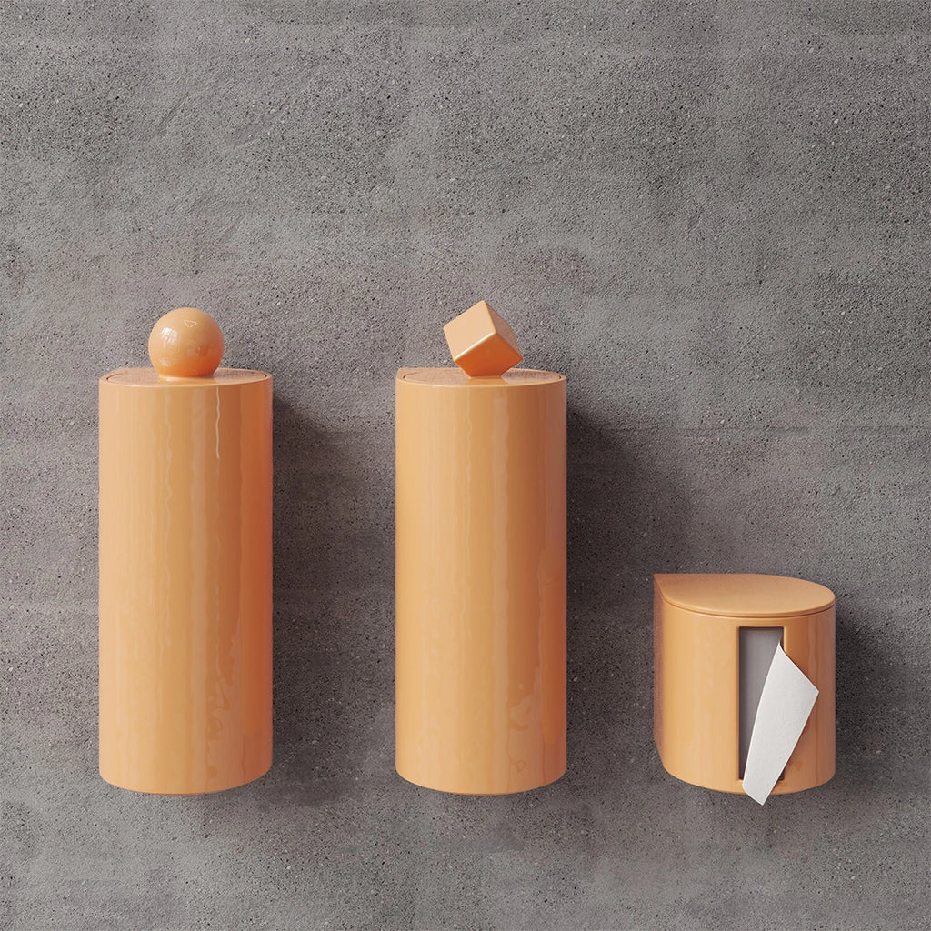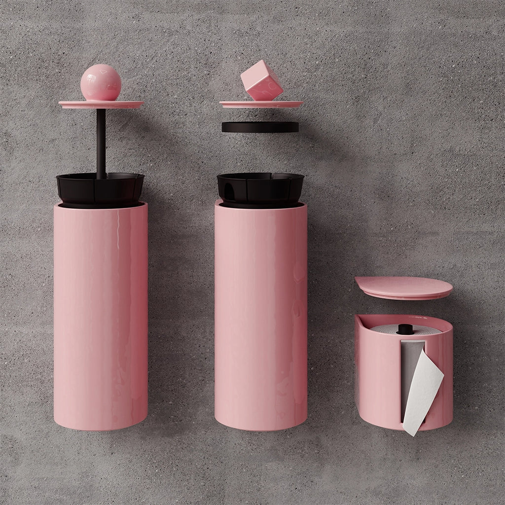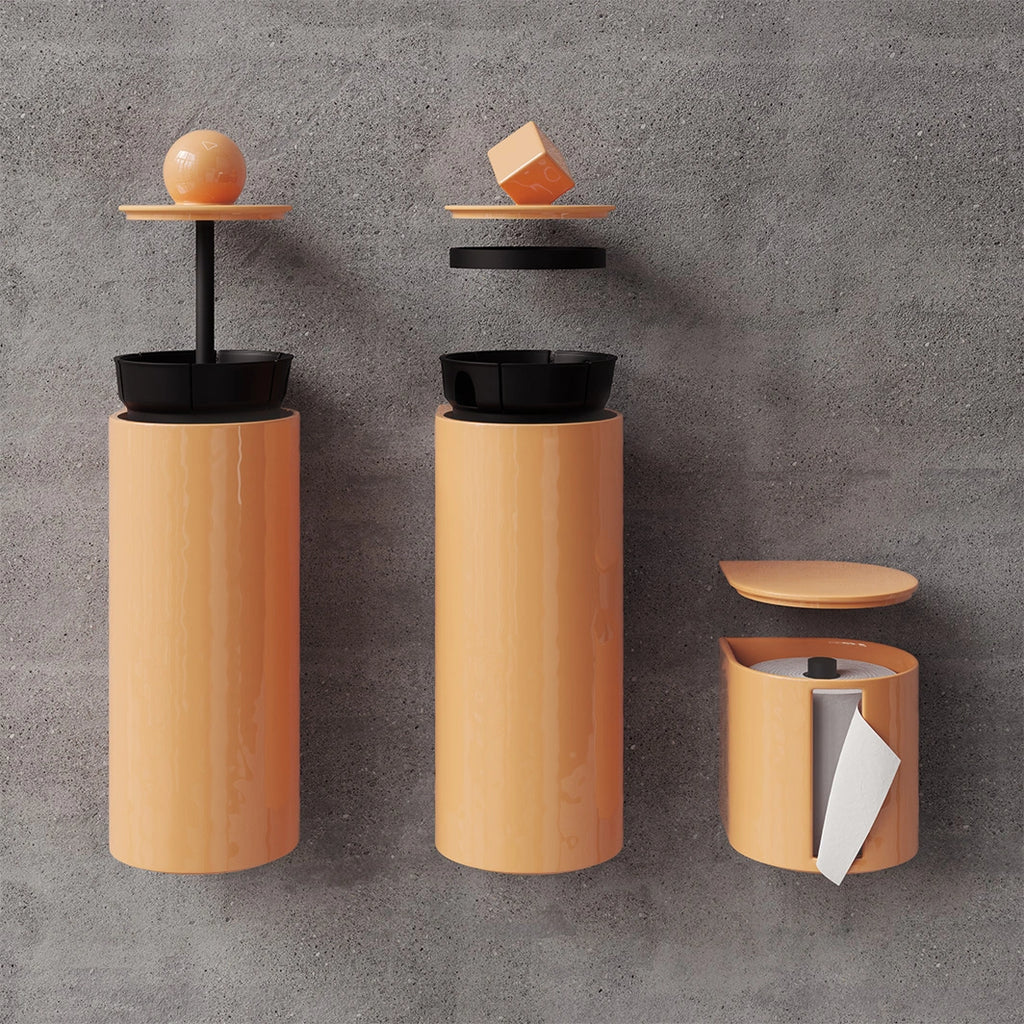 Avec la collection Trium, les accessoires de toilettes s’affirment pleinement. Dérouleur, brosse et poubelle : un trio pensé pour allier design, hygiène et efficacité. Inspirées des lignes géométriques emblématiques de Trone, ces pièces complètent l’espace avec audace et harmonie.