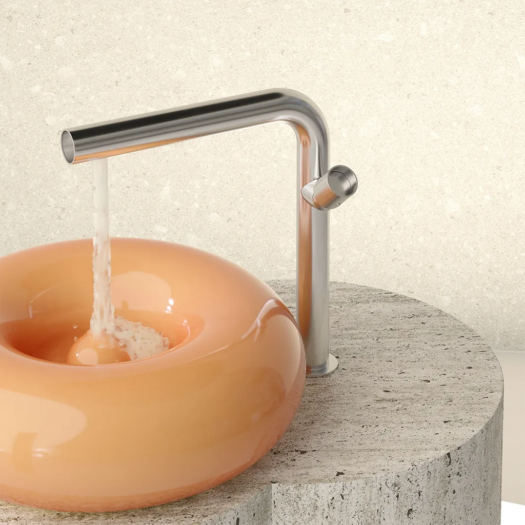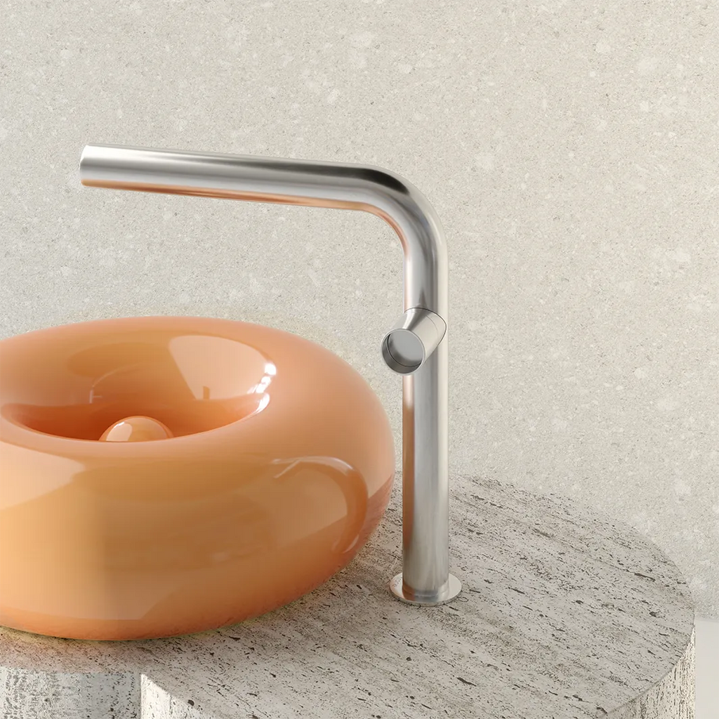 A powerful designed mixer tap, combining industrial aesthetics and modern functionality. Designed to pair with our washbasins, Orbe and Rituel.