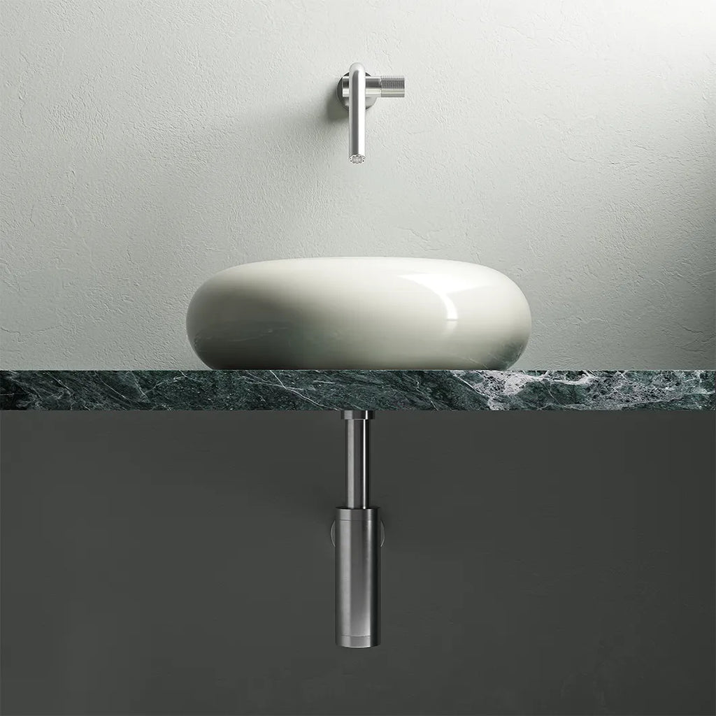 The Encelade siphon, with its straight and balanced lines, adds a discreet yet striking presence beneath a basin. Its industrial and refined look makes it an accessory of choice for contemporary interiors as well as for spaces with a more classic style, blending in with subtlety.
